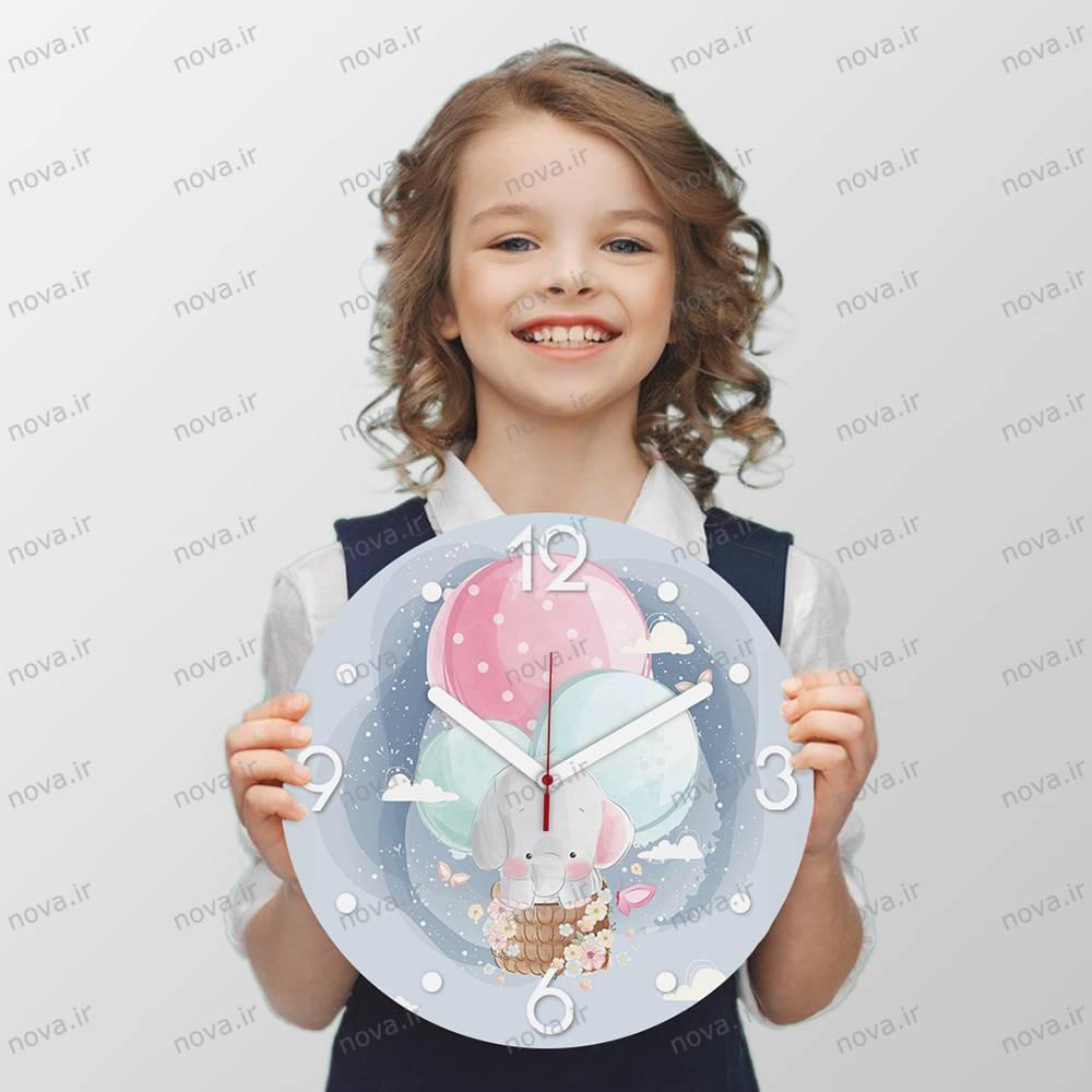 ساعت دیواری مدرن کودک طرح فیل و بالن